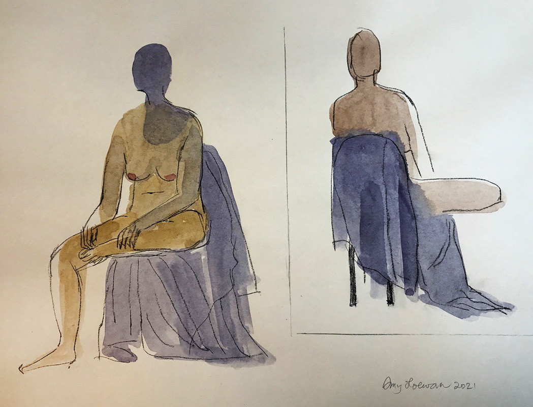 Amy Loewan (RCA) “Drawing Olivia” 2021, watercolour and conte on paper, 16 x 20 inch (framed), $300.00