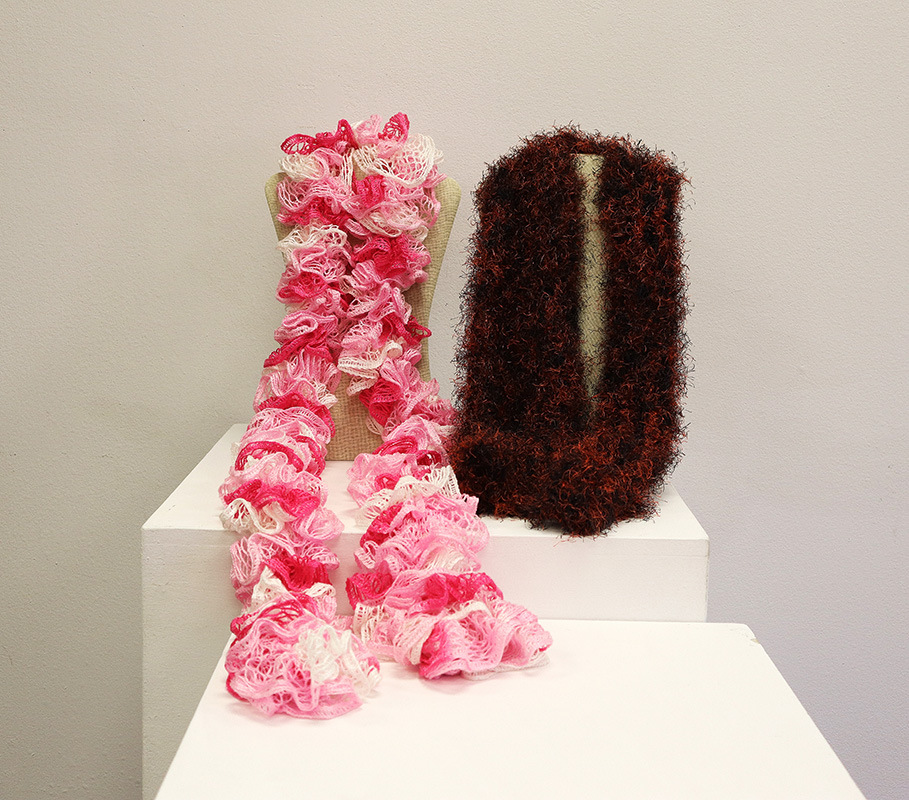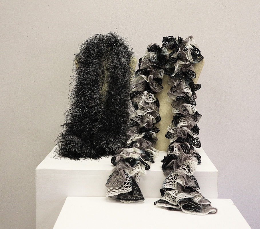 Lynn Robb “Scarves” 2021, knitted fabric, various lengths from 44 to 72 inches, $15.00 each - left one is SOLD