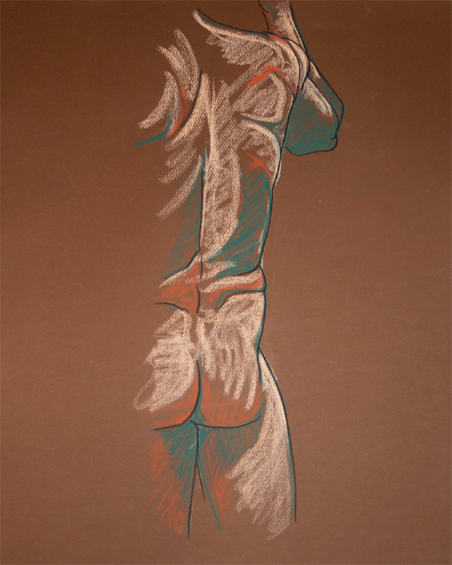 For the past 20 years, his studio practice has been divided between drawing, sculpture and photography. The common threads through all of his work are the study of the human form and the attempt to explore the variations and individuality of the figure, and the attempt to capture how the human form occupies and moves through space.