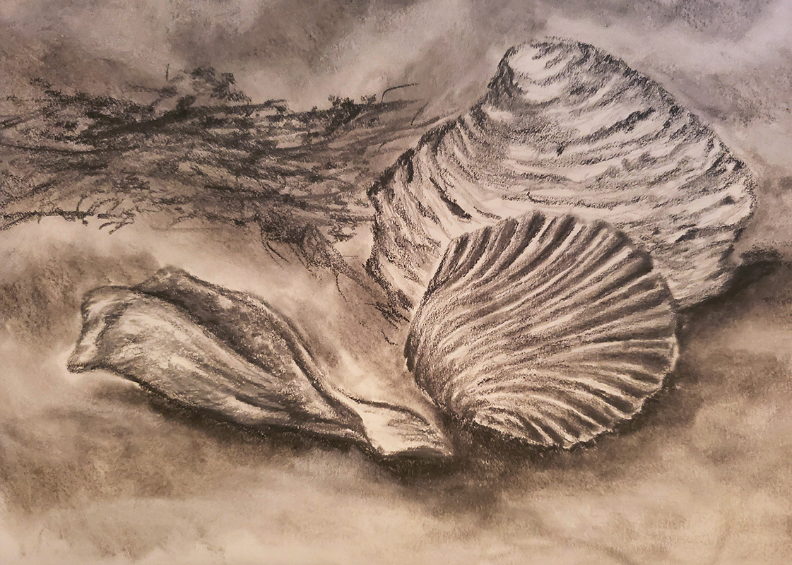 Mary Minnoch “Whelks and Barnacles” April 2022, pencil, 5 x 7 inch, $75.00 (individually) $150.00 (for pair)