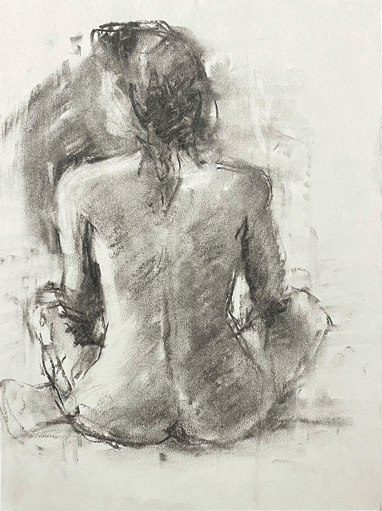 Top Image: Sunil Kalmady, “Figure, back” (background extended), 2023, charcoal on paper. Courtesy of the artist.